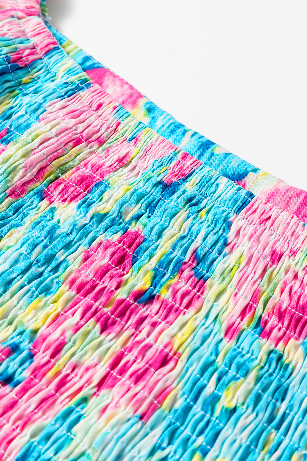 - Feel comfortably chic with the shirred detailing enhancing your silhouette.