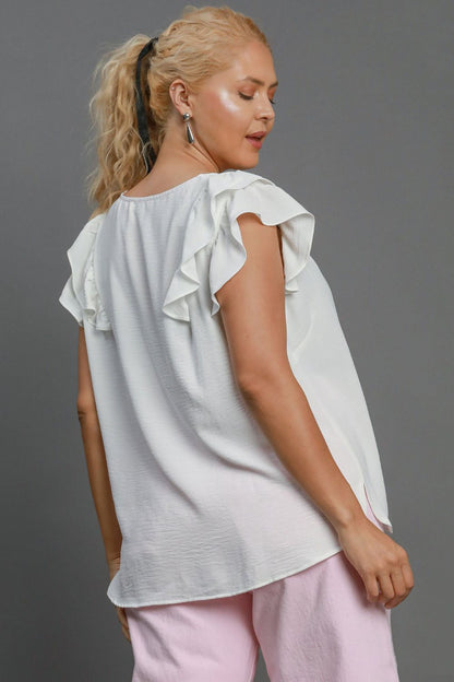 Umgee Full Size V-Neck Double Layered Ruffle Sleeve Blouse Plus Size